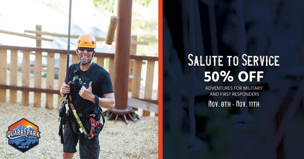 Salute to Service - November 8th -November 11th- Appreciation Event Celebrating Military Members and First Responders Friday, November 8th through Monday, November 11th Quarry Park Adventures Salute to Service Weekend Event We have the wonderful opportunity as a local business and … [Read more...] about Salute to Service – Military and First Responder Appreciation Event – November 8th to 11th