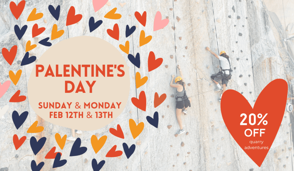 Celebrate Palentine's Day at Quarry Park Adventures Whether love rocks or it's on the rocks... adventure always rocks! We're OPEN FOR ADVENTURE this Friday, Saturday, Sunday, AND Monday - February 10th through 13th. Grab your pal (or your love) and hit the rocks at QPA! Get 20% OFF ALL QUARRY … [Read more...] about Palentine’s Day Offer + Expanded February Schedule